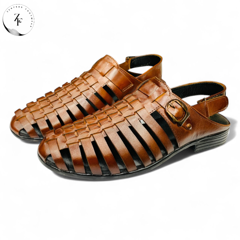 • Upgrade your formal and semi-formal look with these premium brown leather slip-on sandals.