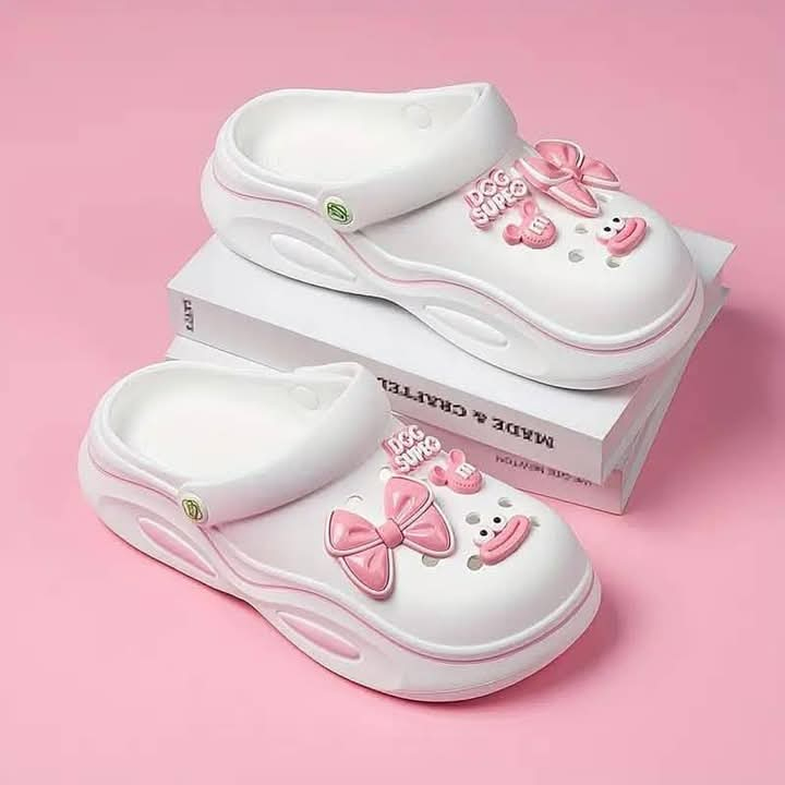 Adorable pink clog design with cute decorative charms